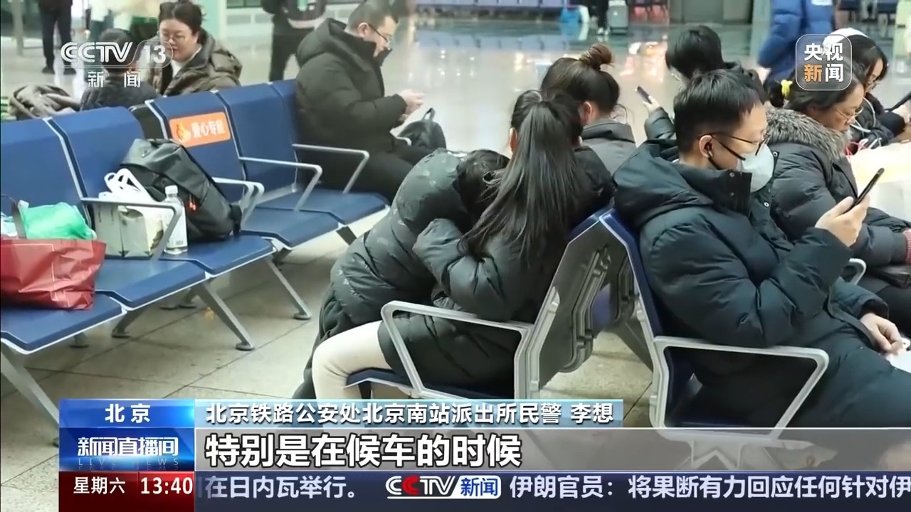 北京铁路公安处北京南站派出所民警 李想:孩子们生性活泼好动,好奇心强,家长们稍有松懈,孩子就可能在未被留意的瞬间脱离看护范围,导致走失走散。特别是在候车的时候,经常有家长因为整理行李、接打电话、寻找检票口等事情暂时分心,让孩子独自跑到候车厅内玩耍,或者是在排队检票时没有紧紧牵住自己的孩子。由于站内人多拥挤,孩子视线受阻,时间一长就找不到家长了。